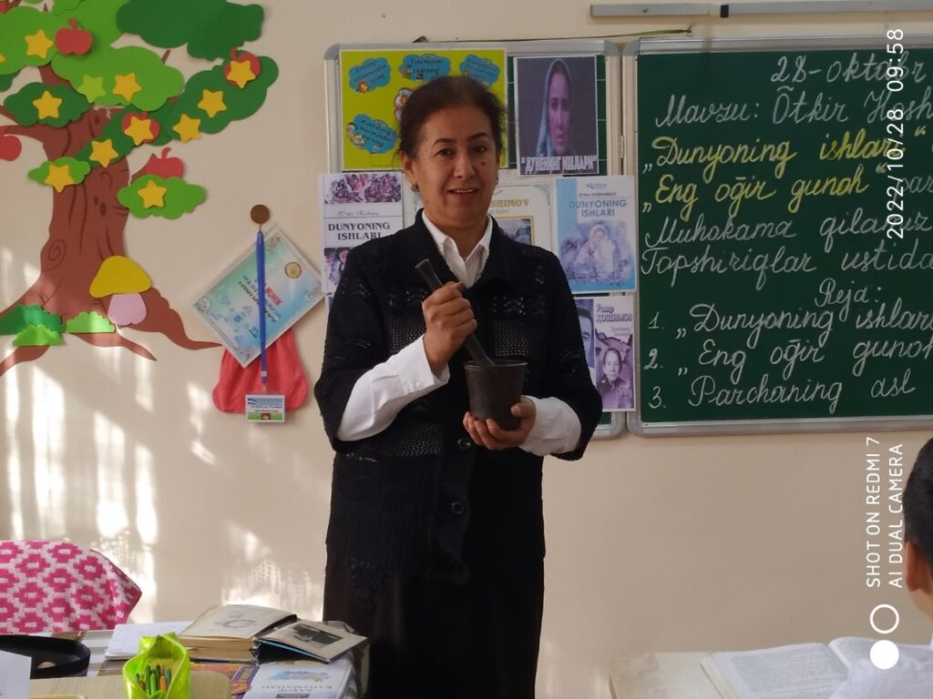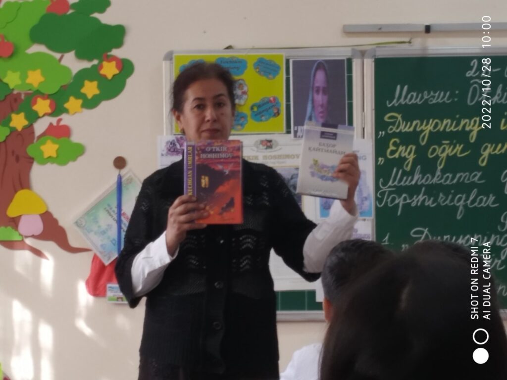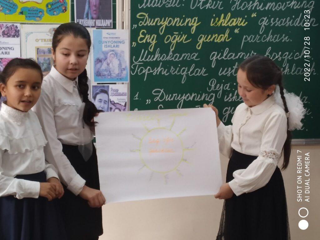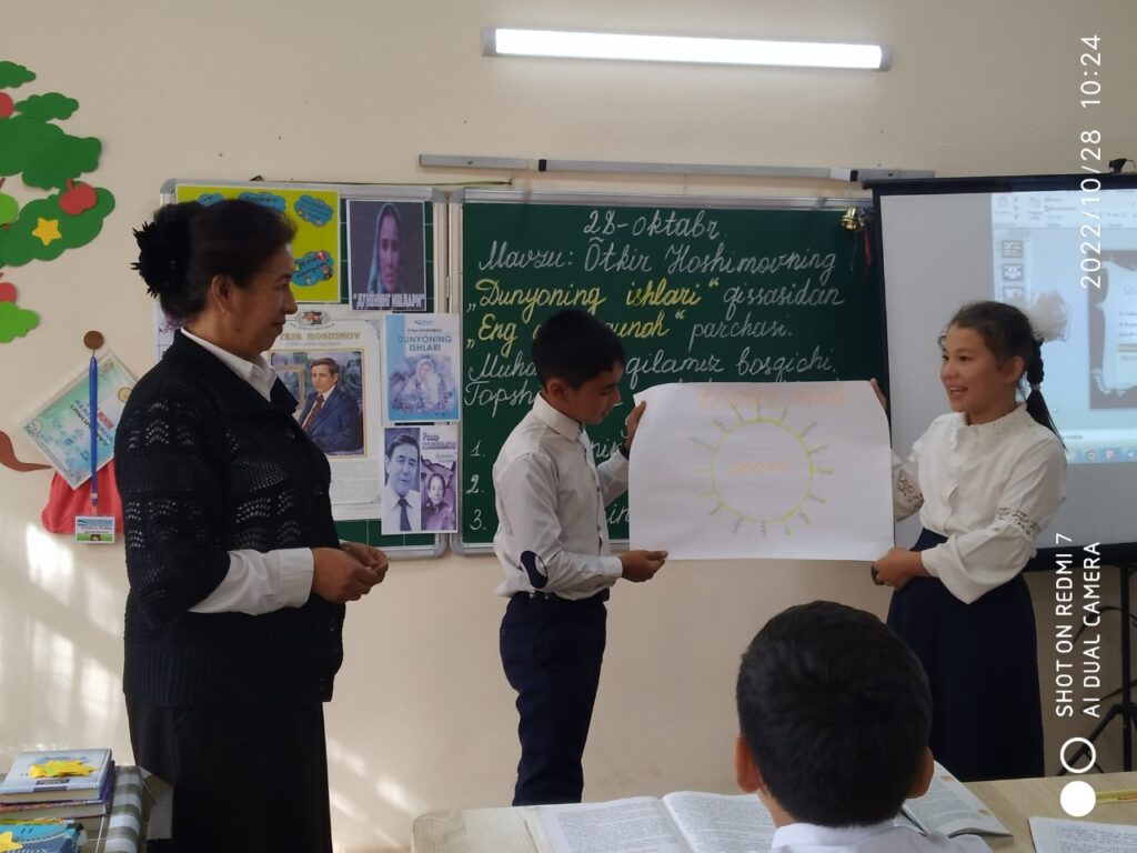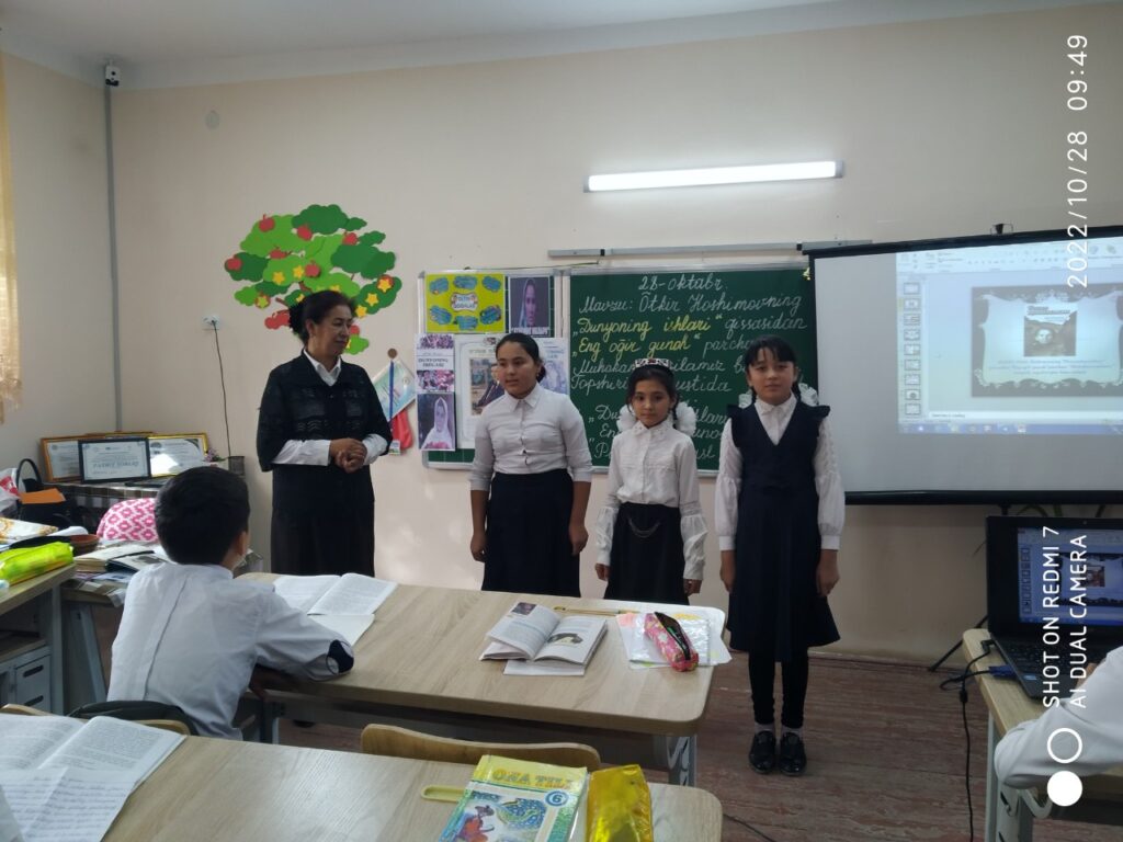 6 — «A»sinfda adabiyot fanidan òtkazilgan ochiq darsdan lavhalar.