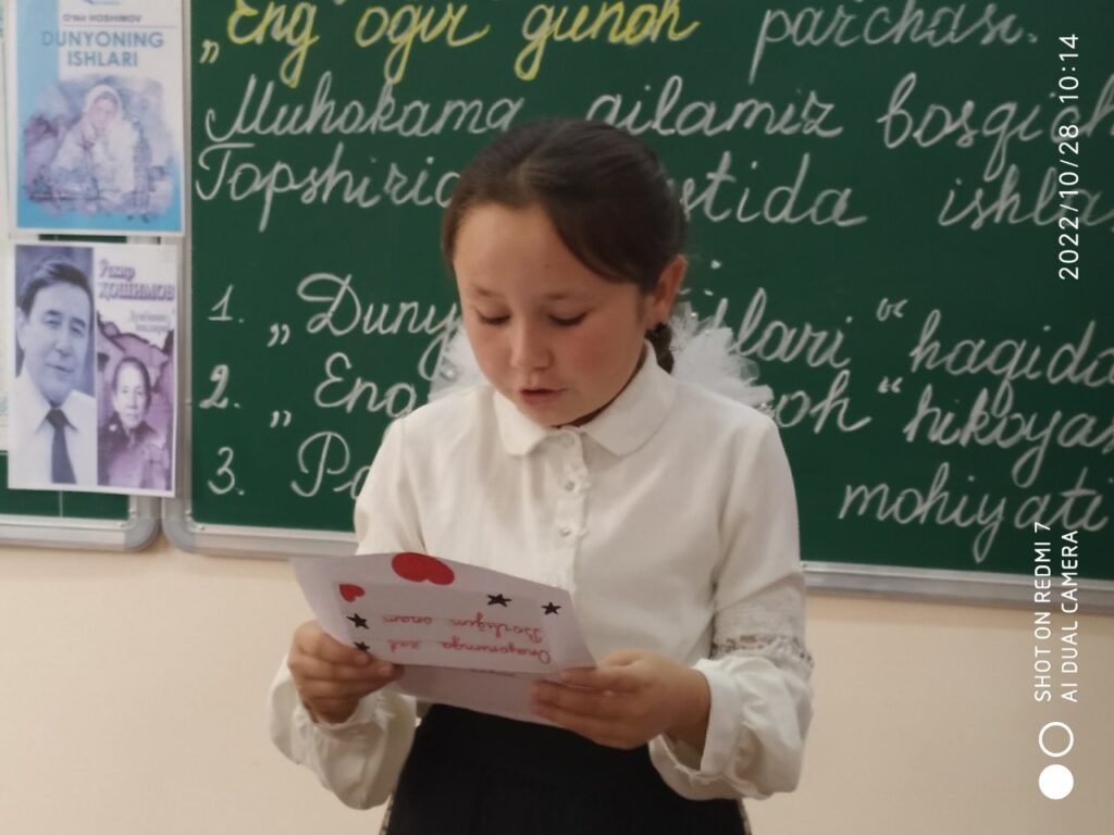 Shahrisabz shahar MMTIBga qarashli 7-umumiy o’rta ta’lim maktabida «21-oktabr O’zbek tiliga davlat tili» maqomi berilganiga 36 yillik munosabati bilan «Til — millat ko’zgusi «nomli tadbiridan lavhalar