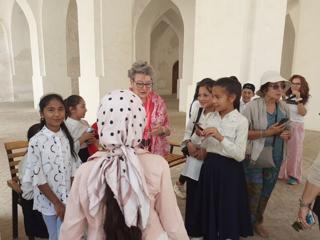 Qashqadaryo viloyati Shahrisabz shahar 7-umumiy o‘rta ta‘lim maktabining ona tili va adabiyot o‘qituvchisi Kaxxarova Dilfuzaning sinfdan tashqari o‘quvchilarni Ispaniya,Amerika, Gollandiyada davlatlaridan kelgan sayohatchilar bilan kutilmagan uchrashuv lavhalari