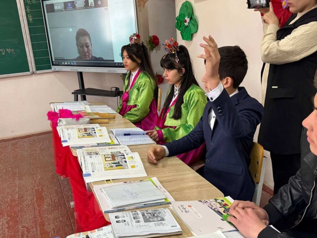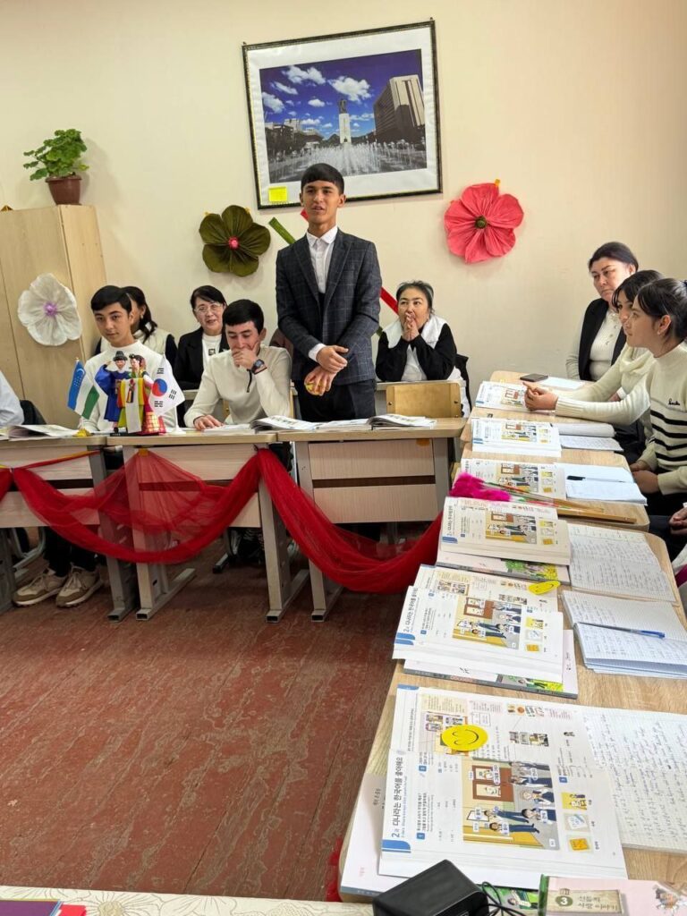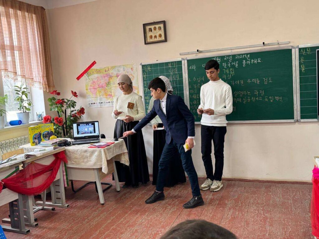 2025년 1월 21일, 카슈카다리야 지역 샤흐리삽즈 시의 7번 학교에서10-b 반과 함께 «디나라는 한국어를 좋아해요 주제로 한 공개강좌가 열렸습니다. 이 공개 수업에서는 학생들의 독창성과 함께 수업이 모범적이었습니다. 오늘 수업의 클립.